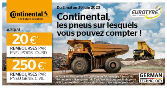 Du 1er Février au 31 Mars 2023 pour l’achat de 4 pneumatiques Poids Lourd Continental neufs été minimum, parmi les […]